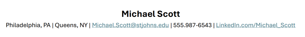 - This section serves as the letterhead of your document and gives your resume a polished, professional feel