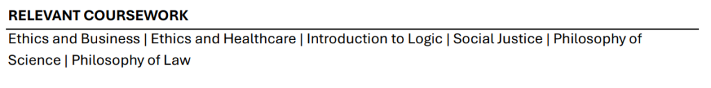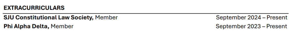 - Great opportunity to highlight the skills/knowledge/experience you are gaining at SJU! Include course names NOT numbers