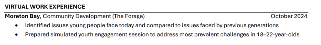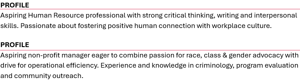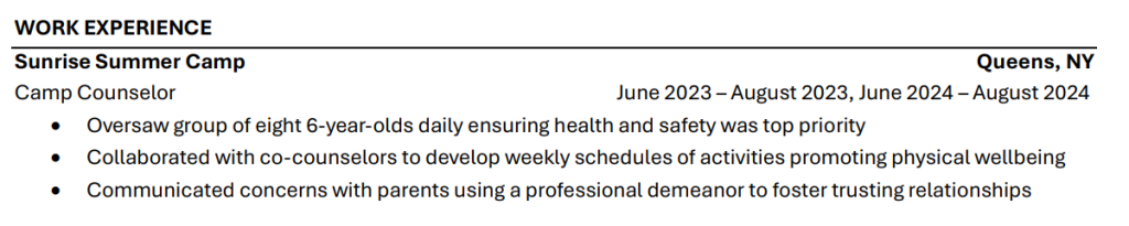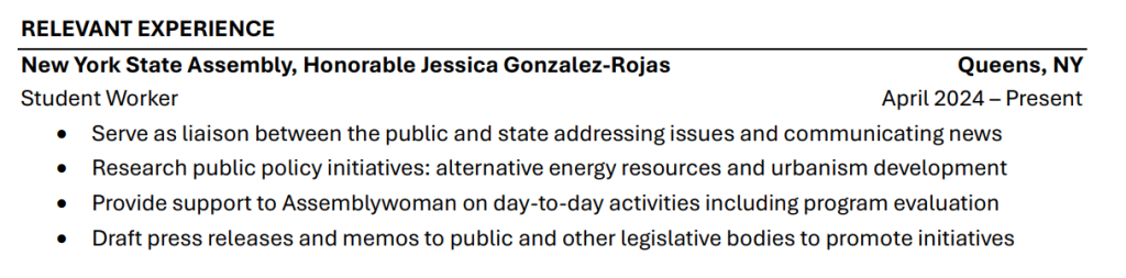 - Use this section if you do not have relevant, professional experience
